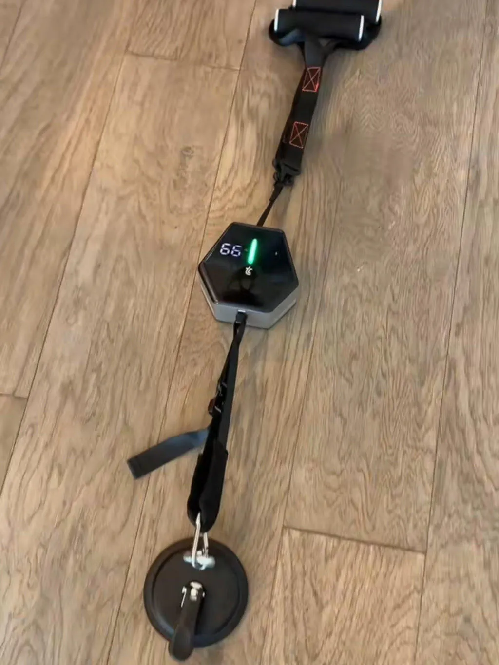 When the green LED light is solid, the portable workout machine is fully charged. If the red indicator appears, the battery is low and needs to be charged before use.